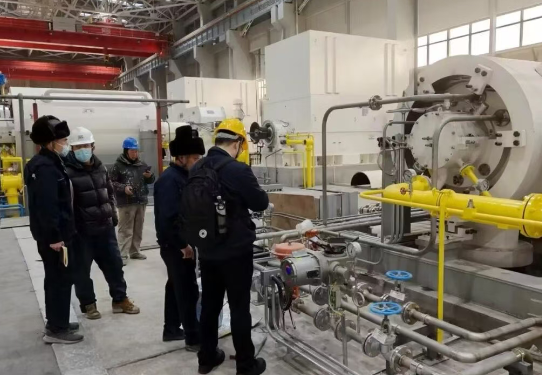 为保障项目高质量、高效率推进,陕鼓高度重视,组建了由服务、数智化、技术等多部门多专业协同的现场服务专项攻坚团队,锚定项目整体建设目标,周瑜、曹龙、王晓良、陈少博、崔卫民、次鸿泽等团队成员驻扎现场,与风沙为伴、与时间赛跑。机组安装阶段,他们严格把控安装精度,高质量完成全部压缩机组的安装任务。调试阶段,他们针对不同工况制定了精细化的调试方案与全场景应急预案,从机组单体试车到系统联动调试,对每一个运行参数、每一项性能指标都进行反复校验、精准优化。